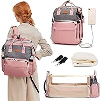Home/IFTTT/Diaper Bag with Changing Station, Travel Foldable Baby Bed, Baby Bag Backpack, Multi-Function Large-Capacity, Portable Bassinets with USB Charging Port, Waterproof, Grey/Pink