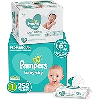 Diapers Newborn / Size 1 (8-14 lb), 252 Count - Pampers Baby Dry Disposable Baby Diapers, ONE MONTH SUPPLY with Baby Wipes Sensitive 6X Pop-Top Packs, 336 Count (Packaging May Vary)