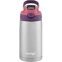Kids Stainless Steel Water Bottle with Redesigned AUTOSPOUT Straw, 13 oz, Eggplant & Punch